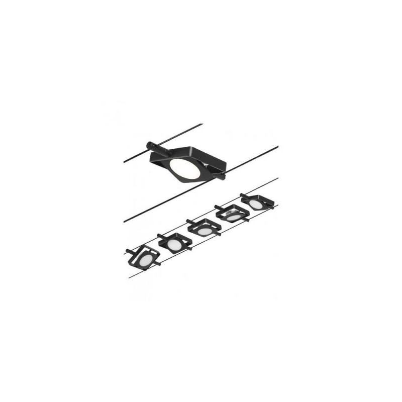 <b>CorDuo LED Cable system MacLED Basic Set 5x250lm 5x4,5W 3000K 230/12V Black matt/Chrome</b><br>The MacLED series in Black matt/Chrome with 5 LED spots can be installed on the wall or on the ceiling, thus offering unlimited designProduct has been archived