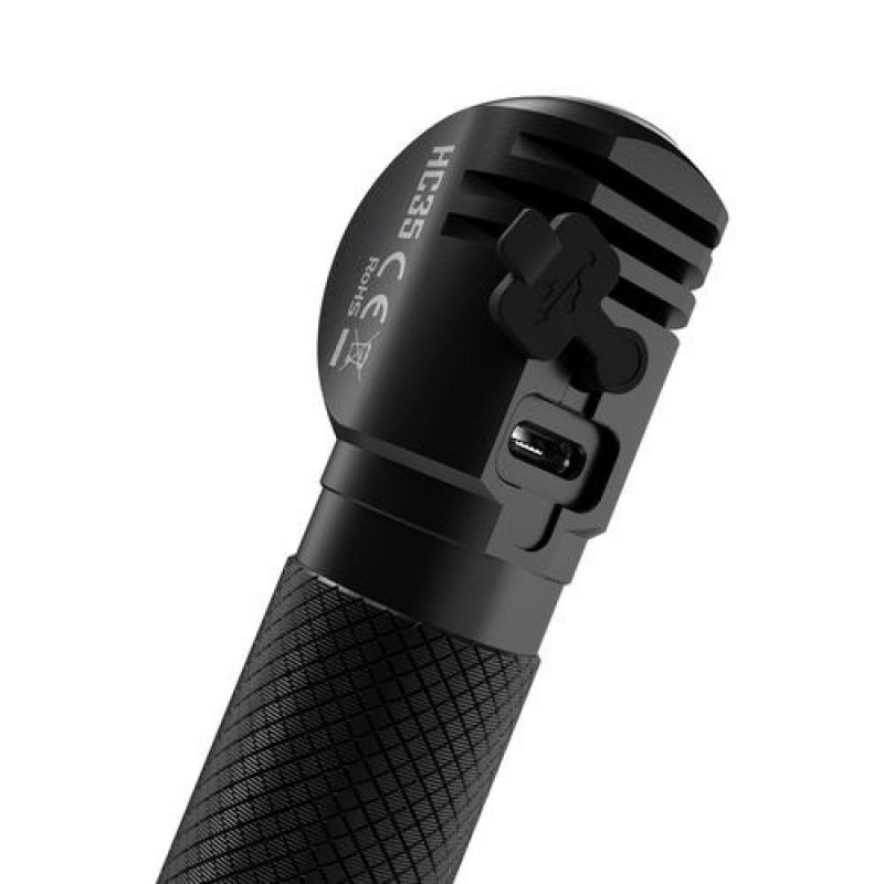 <br />Nitecore HC35. Flashlight type: Headband flashlight, Product colour: Black. Lamp type: LED, Lamps quantity: 4 lamp(s), Luminous flux: 2700 lm. Battery type: 18650/CR123, Battery life (max): 1200 h. Width: 128.2 mm, Weight: 138.5 gProduct has been archived