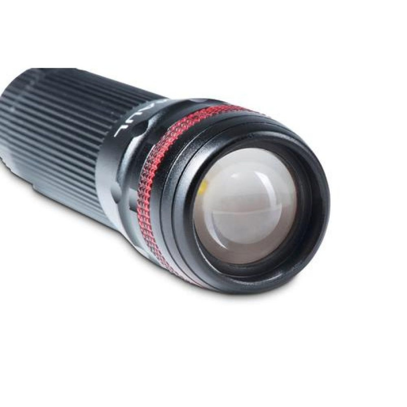 Powerful standard model of compact size<br>Practical: Including hand strap<br>Suitable for outdoor use, splash-proof (IPX4)<br>Safe: red illuminated ring to be seen from all sides<br>Including 3 x 1,5 V batteries (type AAA) 12Warning: Last items in stock!