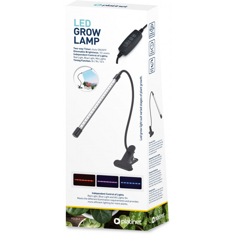 The lamp is equipped with 10 brightness levels to adjust the light intensity according to the needs of the plants. The flexible 360° rotatable stem design and strong clamp allow you to attach and direct the lamp exactly where the light is needed.
