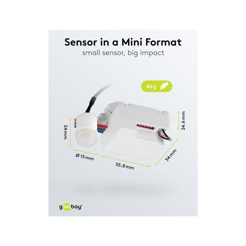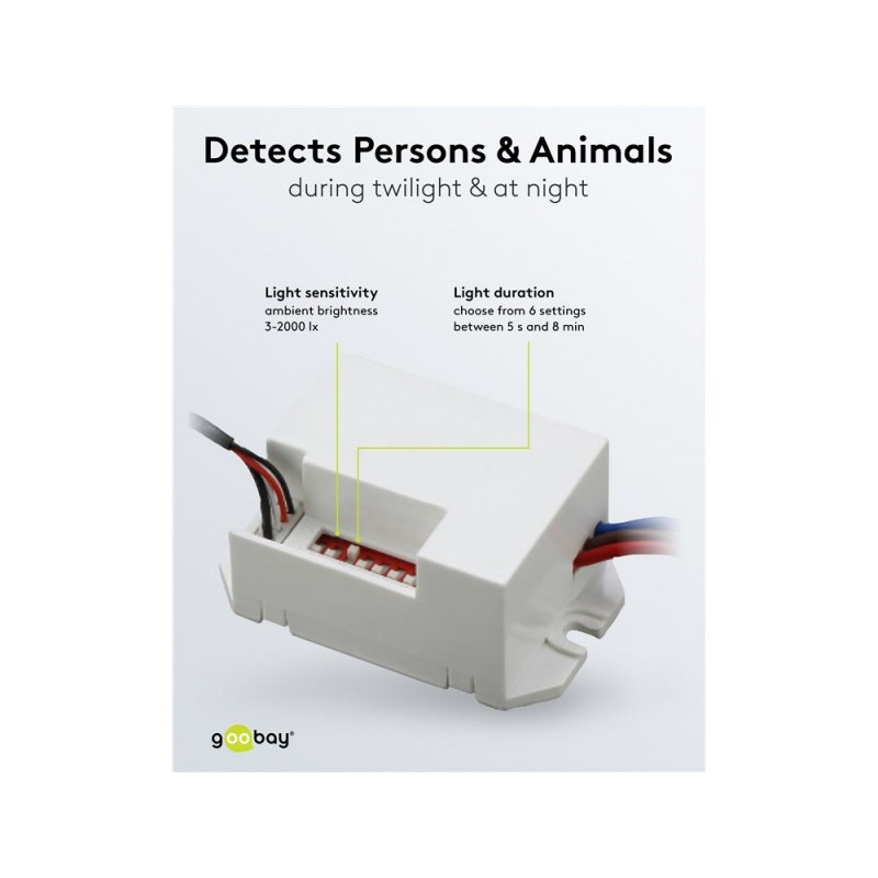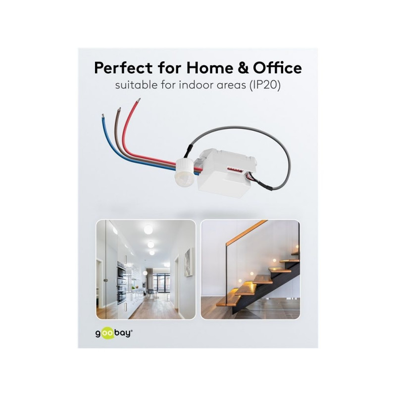 | Description | Never left in the dark again: The motion detector from Goobay prevents tripping hazards at dusk and in the dark, giving you a feeling of safety even at night. Perfect for corridors, bathrooms or hallways – the motion detector always reliably activates the |