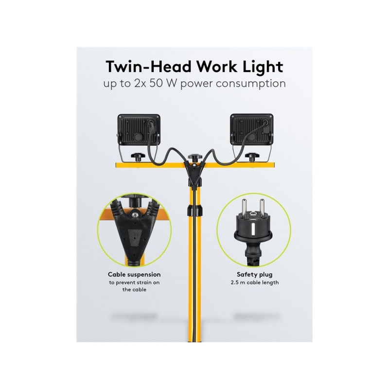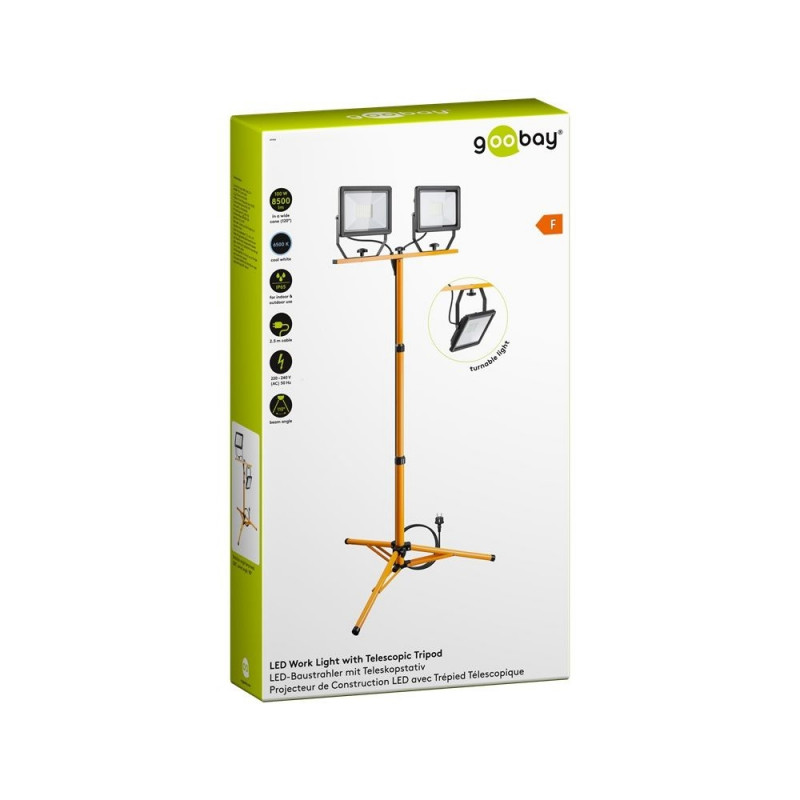 Goobay LED Work Light with Telescopic Tripod, 2x 50 W