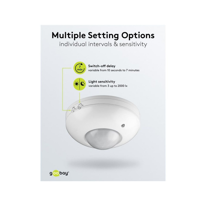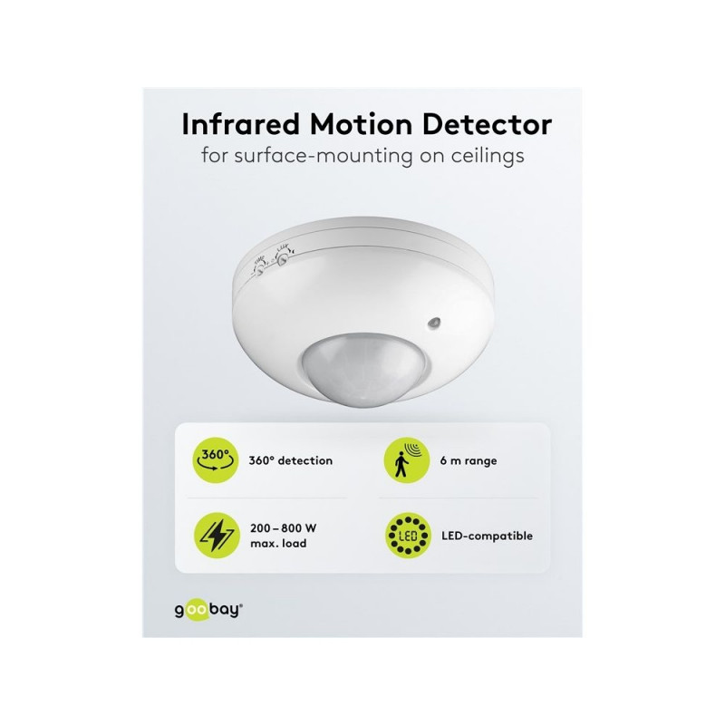 | Description | Never left in the dark again: The motion detector from Goobay prevents tripping hazards at dusk and in the dark, giving you a feeling of safety even at night. Perfect for corridors, bathrooms or hallways – the motion detector always reliably activates the |
