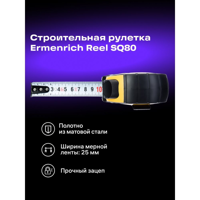 The classic tape measure Ermenrich Reel SQ80 will come in handy for everyday tasks and will be of great help with repairs. It can also be added to the toolkit of a professional builder. You can use it to measure the dimensions of building and finishing materials, workpieces, and fittings as well as to measure distances within a range of up to 8 meters. The tape is self-locking, with an ergonomically designed lock button.