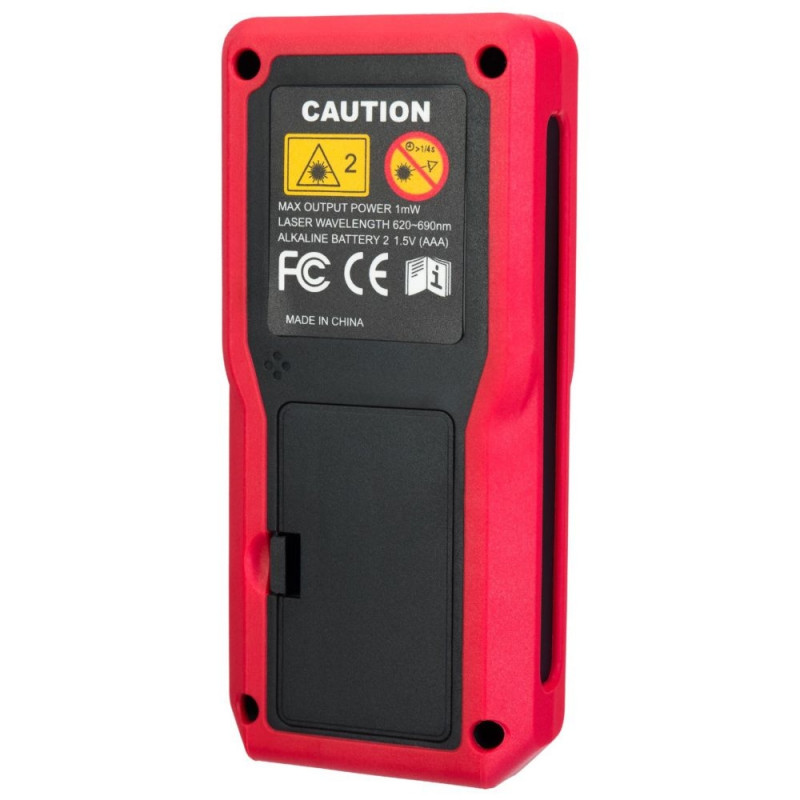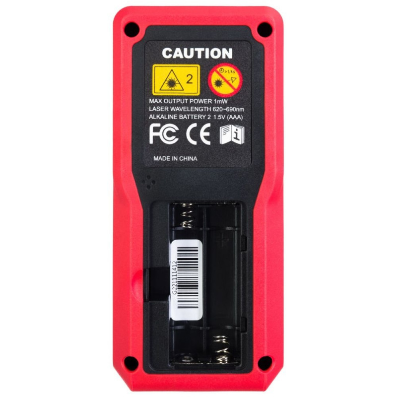 The Ermenrich Reel GM100 laser measuring device has a large LCD display. The compact plastic housing and easy access to the control buttons make it easy to use the instrument in demanding work environments. It is powered by 2 AAA batteries and has an auto power off feature that will automatically turn off either the laser or the laser gauge to conserve battery power. A set of batteries lasts for more than 5,000 measurements on average. Depending on the mode selected, the instrument takes a single distance measurement or a continuous measurement of the room. You can turn off the audible warnings if you want to work in peace.