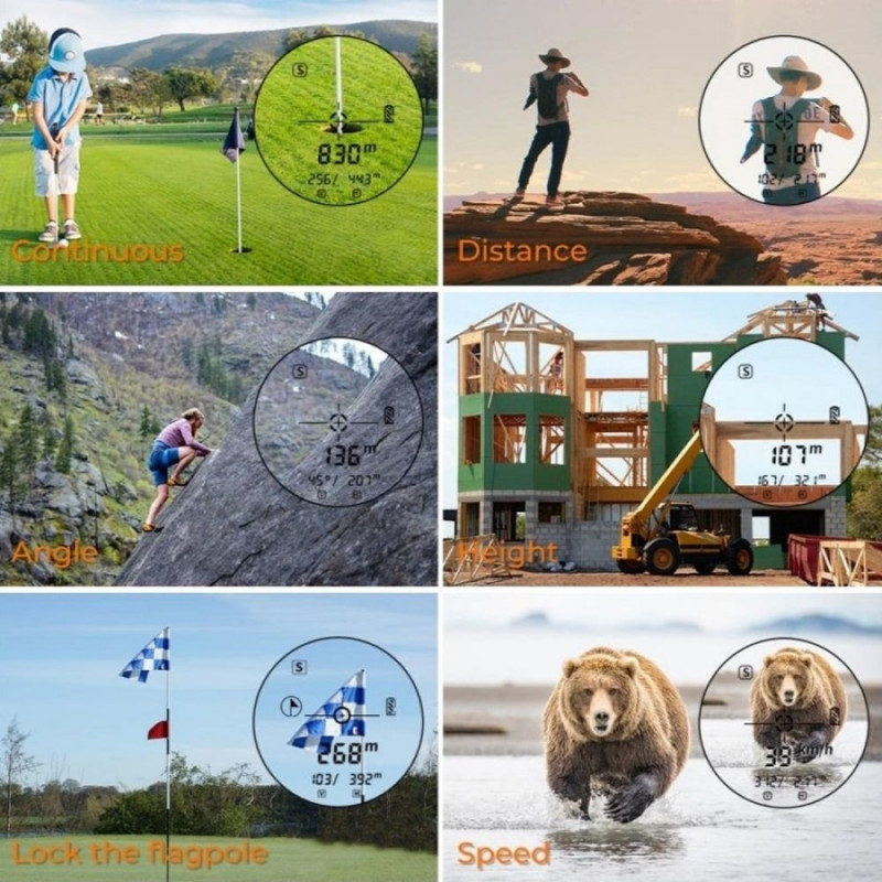 • It can be used as an instrument for installation of electric equipment (can easily identify small distant targets such as an electric wire, wire tower). Useful on highway, municipal engineering, forest survey and design, construction, network planning survey and design, communication overhaul, hunting, golf and so on.