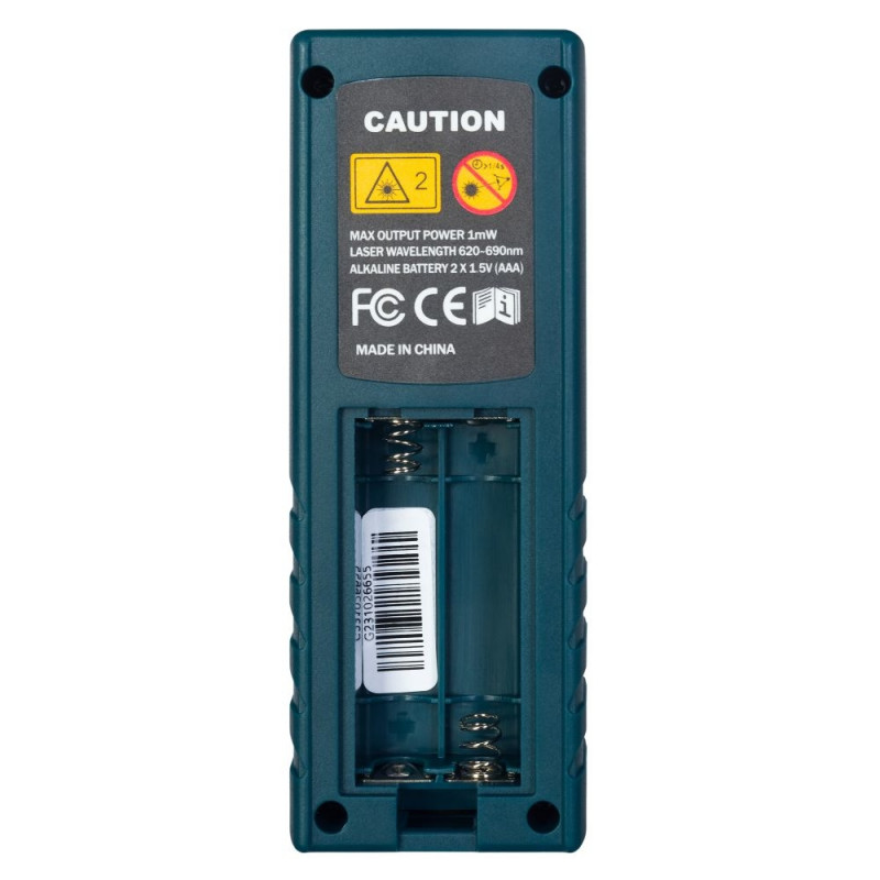 AAA batteries are used as the power supply; a set of 2 enables you to make up to 5,000 measurements. The battery charge indicator will tell you when it is time to replace the batteries, and the laser auto-off function will help save battery power.