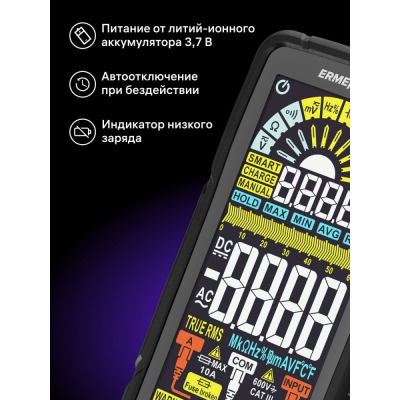 | Automatic recognition function (Smart) | + (only for DC and AC voltage, resistance and continuity) |