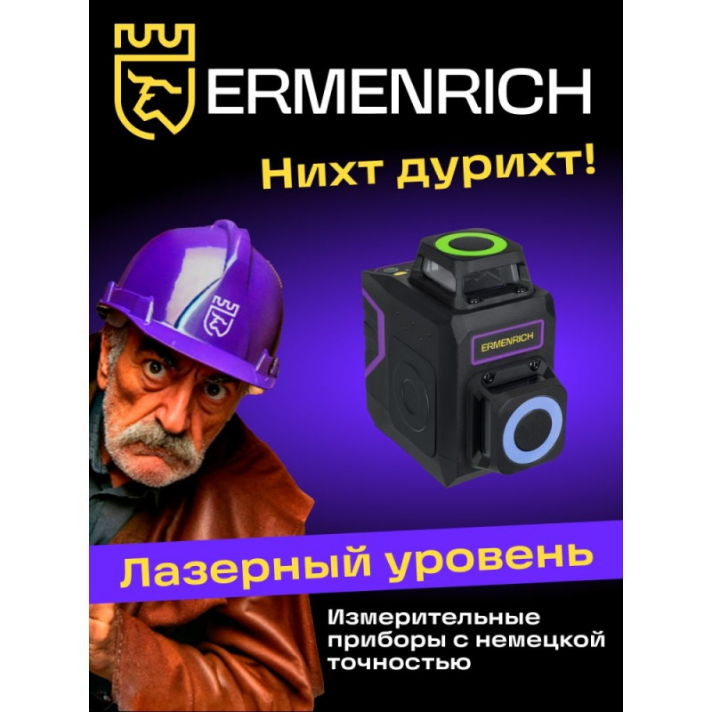 The Ermenrich PRO LV40 is equipped with a compensator that aligns the laser plane, reducing vibrations. The accuracy is quite high – with a measurement error of just 1.5mm per 5m (0.06in per 16ft). The built-in rechargeable battery provides up to 42 hours of battery run time (at a low-brightness level). Four different brightness levels of laser lines are available, so you can choose the best option depending on the lighting conditions. The level is designed to operate over a wide temperature range, and it is dust- and splashproof.