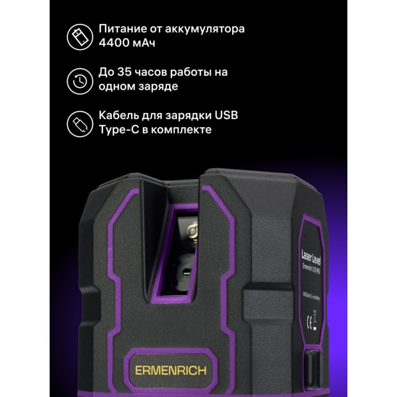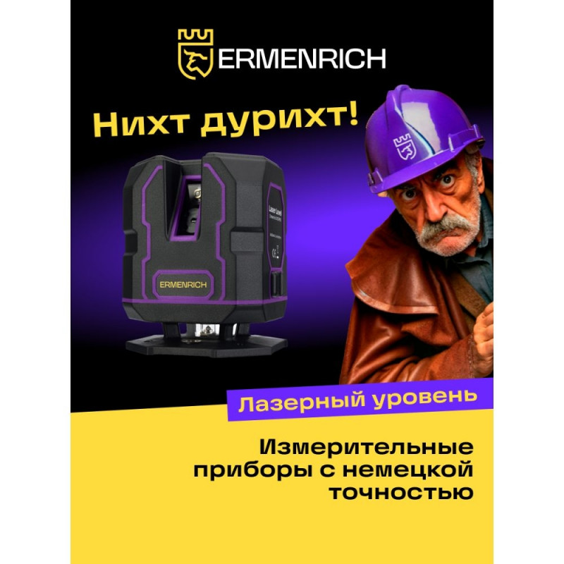 The Ermenrich PLUS LV30 Laser Level is a helpful tool for construction, design, repair, and land surveying work. This product is highly versatile, suitable for use in a variety of settings, from large construction sites to apartment buildings and private houses. The level creates one horizontal plane with a 360° sweep and one vertical line. The green laser beam is clearly visible in any lighting conditions, the lines are distinct even in bright sunlight. To increase visibility, you can change their brightness by selecting from four levels.
