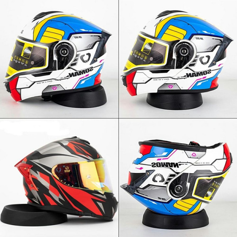 Podkładka ochronna pod kask motocyklowy. Zabezpiecza kask przed zarysowaniem po ustawieniu go np. na stole. Antypoślizgowy spód zapobiega przesuwaniu się podstawki po powierzchni. Uniwersalna konstrukcja dostosowana do dowolnego rodzaju kasku.