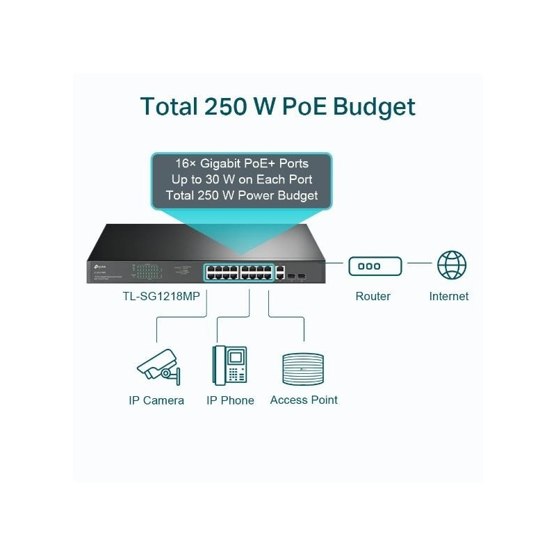 Switch|TP-LINK|TL-SG1218MP|Desktop/pedestal|Rack|16x10Base-T / 100Base-TX / 1000Base-T|PoE+ ports 16