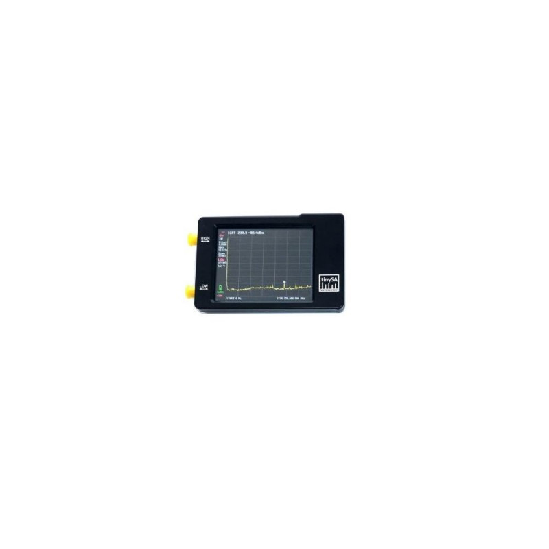 Low input mode spec:Input frequency range from 100kHz to 350MHz (with some limitations down to 10kHz).Input impedance 50 ohm when input attenuation set to 10dB or more.Selectable manual and automatic input attenuation between 0dB and 31dB in 1 dB steps.Absolute maximum input level of +10dBm with 0dB internal attenuation.Absolute maximum short term peak input power of +20dBm with 30dB internal attenuation.Suggested maximum input power of +5dBm with internal attenuation in automatic mode.For best measurements keep input power below -25dBm.Input Intercept Point of third order modulation products (IIP3) of +15dBm with 0dB internal attenuation.1dB compression point at -1dBm with 0dB internal attenuation.Power detector resolution of 0.5dB and linearity versus frequency of +/-1dB.Absolute power level accuracy after power level calibration of +/- 1dB.Lowest discernible signal using a resolution bandwidth of 30kHz of -102dBm.Frequency accuracy equal to the selected resolution bandwidth.Phase noise of -90dB/Hz at 100kHz offset and -115dB/Hz at 1MHz offset.Spur free dynamic range when using a 30kHz resolution bandwidth of 70dB.Manually selectable resolution filters of 3, 10, 30, 100, 300, 600kHz. Automatic selection of one of the 57 resolution filters.On screen resolution of 51, 101, 145 or 290 measurement points.Scanning speed of over 1000 points/second using largest resolution filters.Automatic optimization of actual scanning points to ensure coverage of the whole scan range regardless of the chosen resolution bandwidth.Spur suppression option for assessing if certain signals are internally generated or actually present in the input signal.After a small HW modification it is possible to Listen to the demodulated audio.