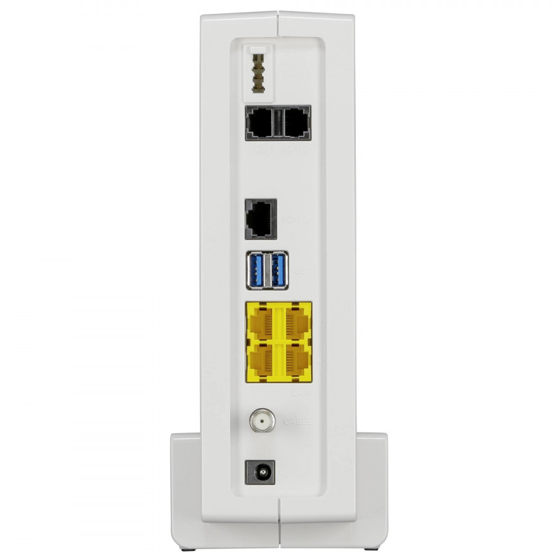 - Connections: 4 Gigabit ports, 2 USB-A 3.0, 2 analogue telephone connections, 1 ISDN-S0 connection