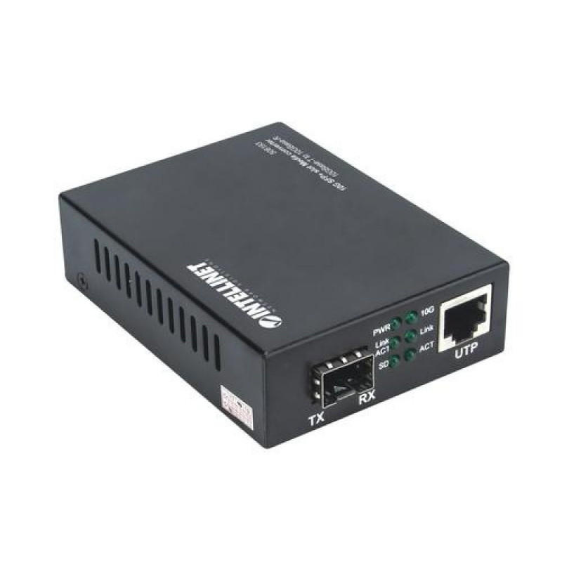 Intellinet 10GBase-T to 10GBase-R Media Converter, 1 x 10 GB SFP+ Slot, 1 x 10GB RJ45 Port