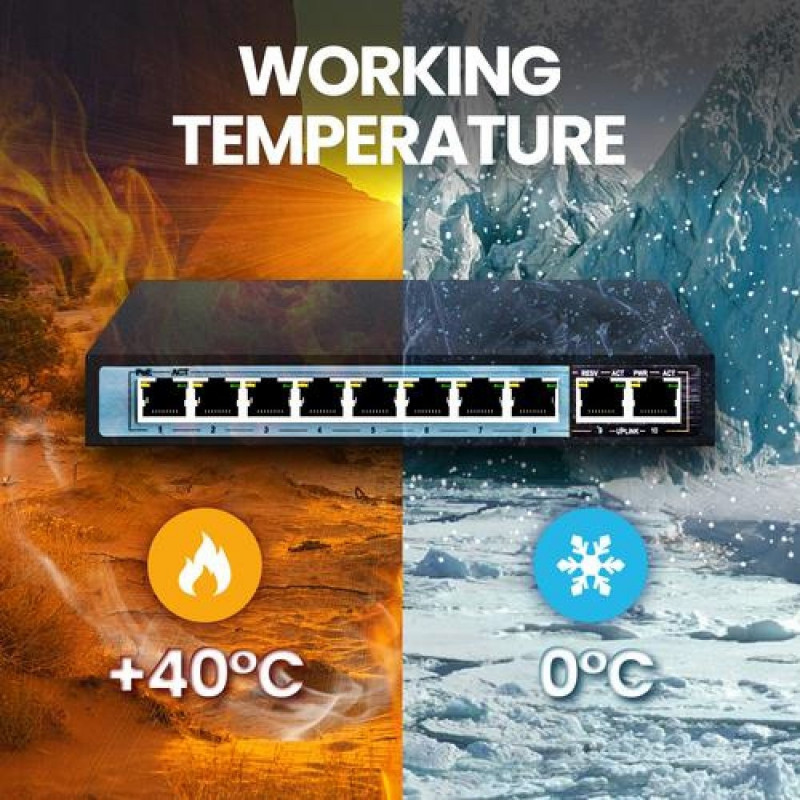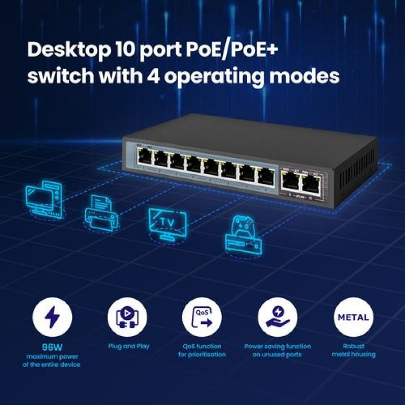 Extralink PoE Switch CERES 8x 100Mb/s PoE/PoE+, 2x RJ45 Uplink 100Mb/s, 96W