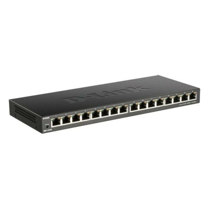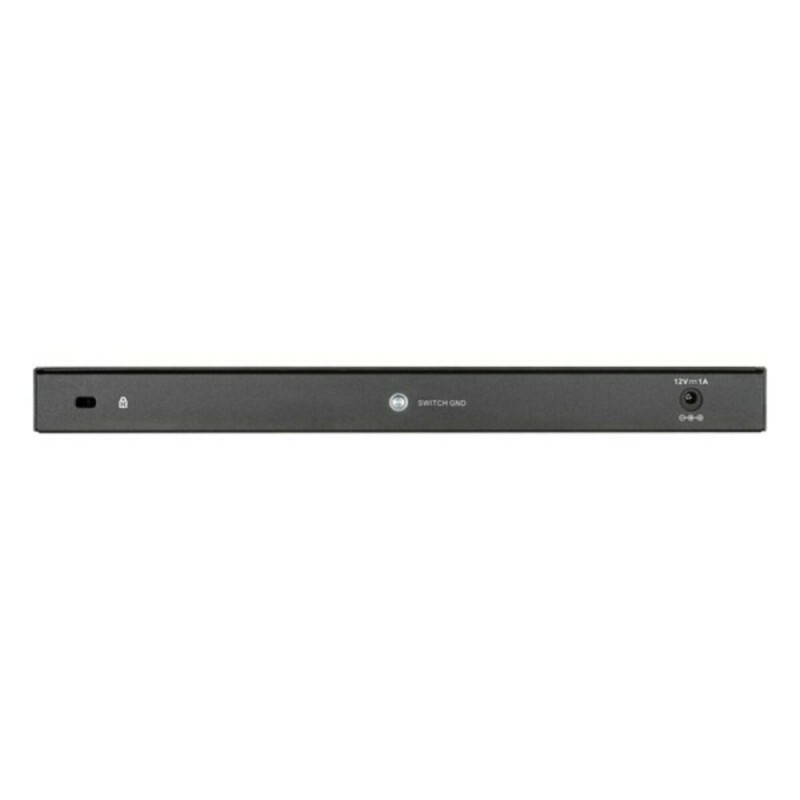 The DGS-1016S from D-Link is a desktop switch designed for network environments requiring high efficiency and reliability. It features 16 RJ45 ports supporting speeds of 10/100/1000 Mbps, enabling Gigabit Ethernet connections for fast and stable data transfer. This model complies with IEEE 802.3 standards, including 10BASE-T, 100BASE-TX, 1000BASE-T, 802.3x Flow Control for flow control, 802.1p QoS for quality of service, and 802.3az EEE for energy efficiency, reducing power consumption without sacrificing performance. Its switching capacity is 32 Gbps, with advanced features like Auto-MDI/MDIX crossover on all ports eliminating the need for special crossover cables, and a secure store-and-forward scheme that improves packet integrity and processing speed. It supports jumbo frames up to 9,216 bytes and offers auto-negotiation and adaptation to speeds and duplex modes (full and half), facilitating integration with various devices and networks. Additionally, it includes a quality of service architecture with 8 strict priority queues, optimizing traffic and prioritizing critical data to ensure efficient flow.