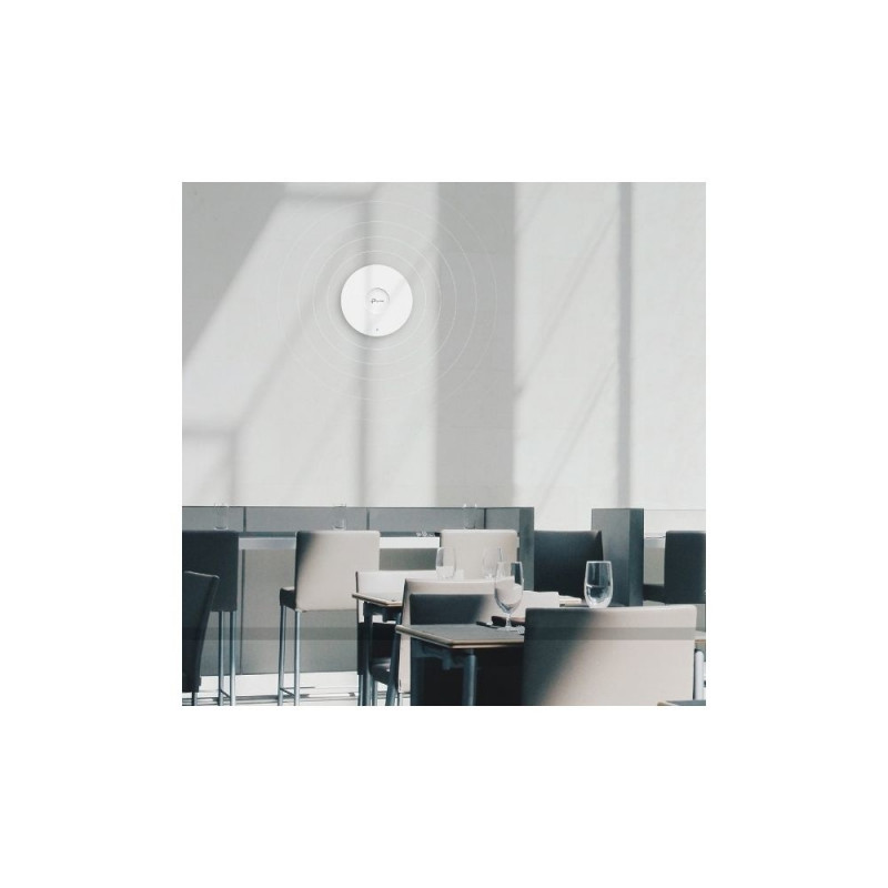 "TP-Link Omada AX5400 WLAN-Dualband-Accesspoint zur Deckenmontage. 2,4 GHz, 5 GHz, Maximale Datenübertragungsrate: 5400 Mbit/s, Ethernet LAN Datentransferraten: 2500 Mbit/s. Power over Ethernet (PoE). Produktfarbe: Weiß"