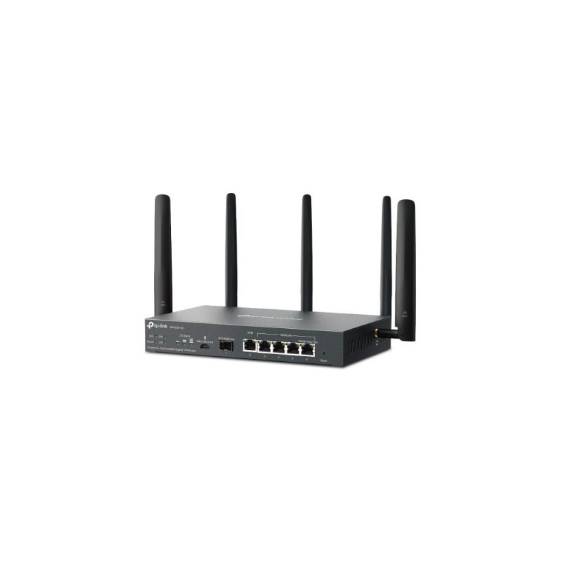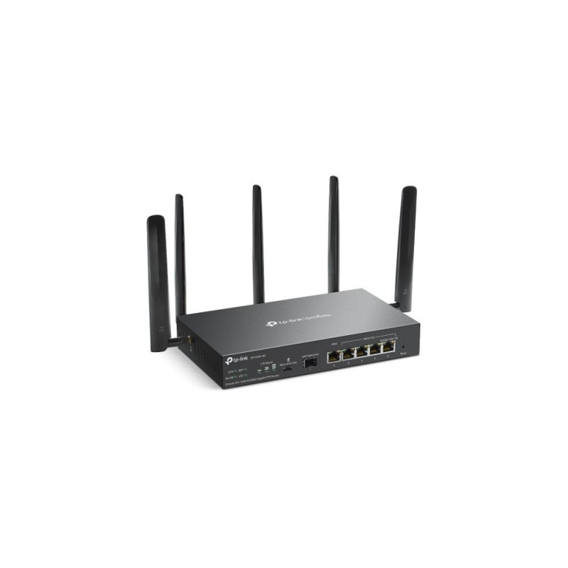 "TP-Link Omada ER706W-4G. WLAN-Band: Dual-Band (2,4 GHz/5 GHz), Top WLAN-Standard: Wi-Fi 6 (802.11ax), WLAN Datentransferrate (max.): 2402 Mbit/s. Schnittstellentyp Ethernet-LAN: Gigabit Ethernet. Mobilfunknetzgenerierung: 4G, 3G-Standards: HSDPA, HSUPA, WCDMA, 4G-Standards: LTE-TDD & LTE-FDD. NAT Funktionalität: • One-to-One NAT • Multi-Net NAT • Virtual Server • Port Triggering† • NAT-DMZ •.... Produkttyp: Desktop-/Pol-Router, Produktfarbe: Schwarz, LED-Anzeigen: LAN, LTE, Status, System, WAN"