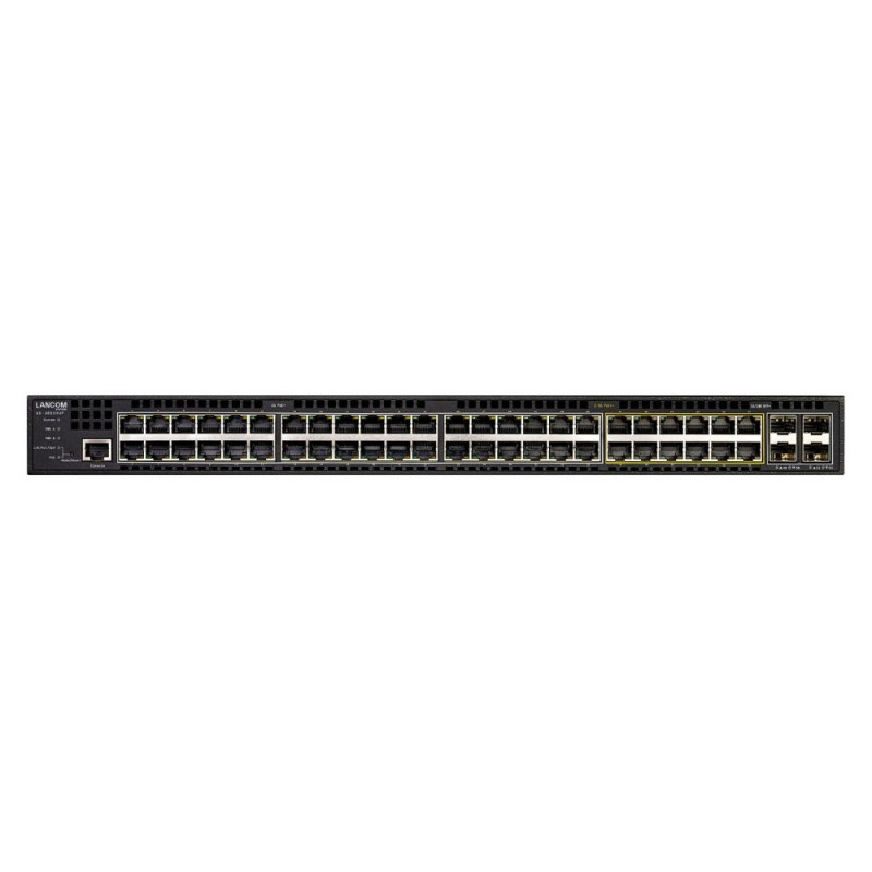 "LANCOM GS-3652XUP. Switch-Typ: Managed, Switch-Ebene: L3. Basic Switching RJ-45 Ethernet Ports-Typ: 2.5G Ethernet (100/1000/2500), Anzahl der basisschaltenden RJ-45 Ethernet Ports: 48, Konsolen-Port: RJ-45. MAC-Adressentabelle: 32000 Eintragungen, Routing-/Switching-Kapazität: 212 Gbit/s. Netzstandard: IEEE 802.1AX, IEEE 802.1D, IEEE 802.1Q, IEEE 802.1ab, IEEE 802.1ad, IEEE 802.1ak, IEEE 802.1p,.... Netzstecker: AC-Eingangsbuchse. Power over Ethernet (PoE). Rack-Einbau, Formfaktor: 1U"