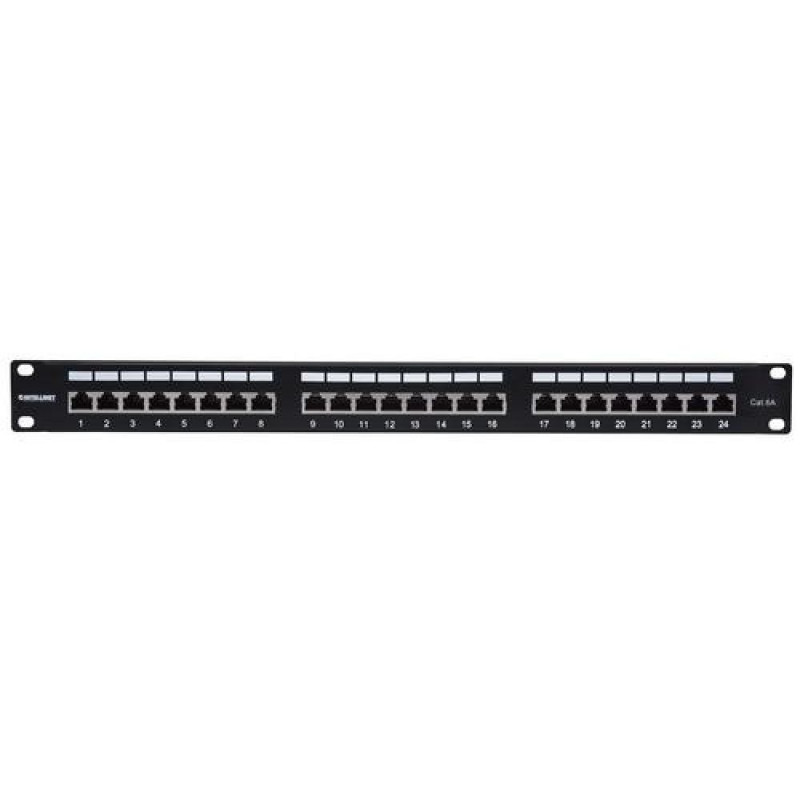 Intellinet Patch Panel, Cat6a, FTP, 24-Port, 1U, Shielded, 90° Top-Entry Punch Down Blocks, Black