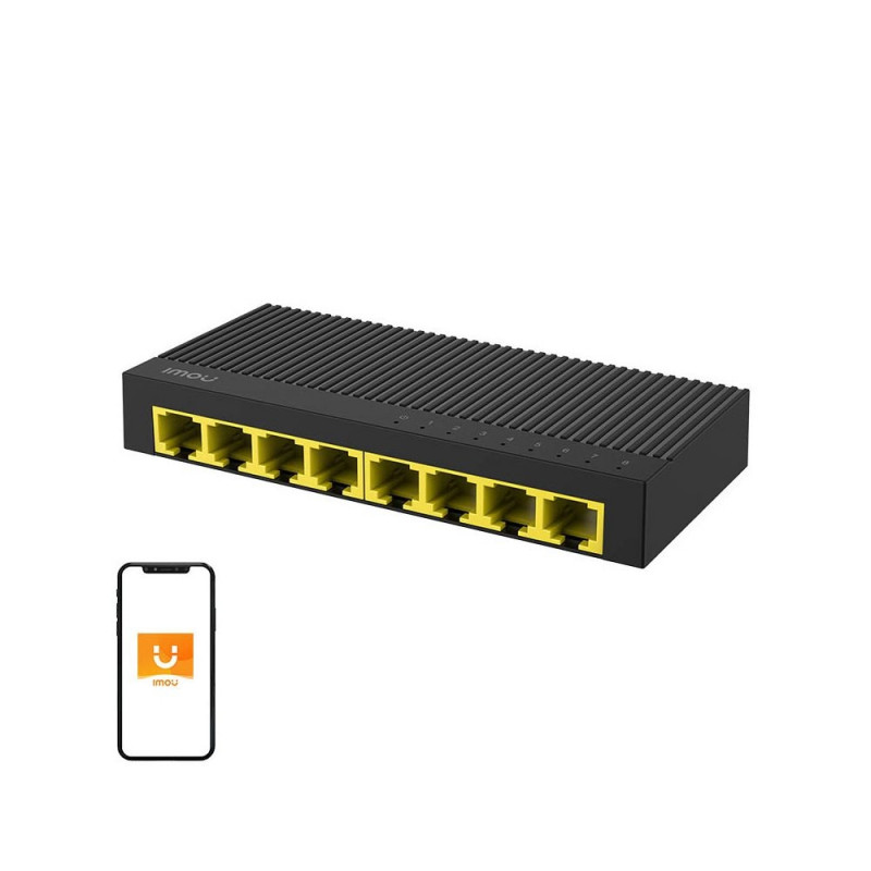 The IMOU SG108C LAN Switch offers 8 RJ45 ports, providing fast and stable network connectivity. It supports automatic speed negotiation in the 10/100/1000 Mbps range, and the Auto MDI/MDIX function eliminates the need for crossover cables. In addition, the 802.3X Flow Control protocol provides efficient data flow control. Installation of the device is quick and hassle-free, and the Plug & Play function enhances user convenience.