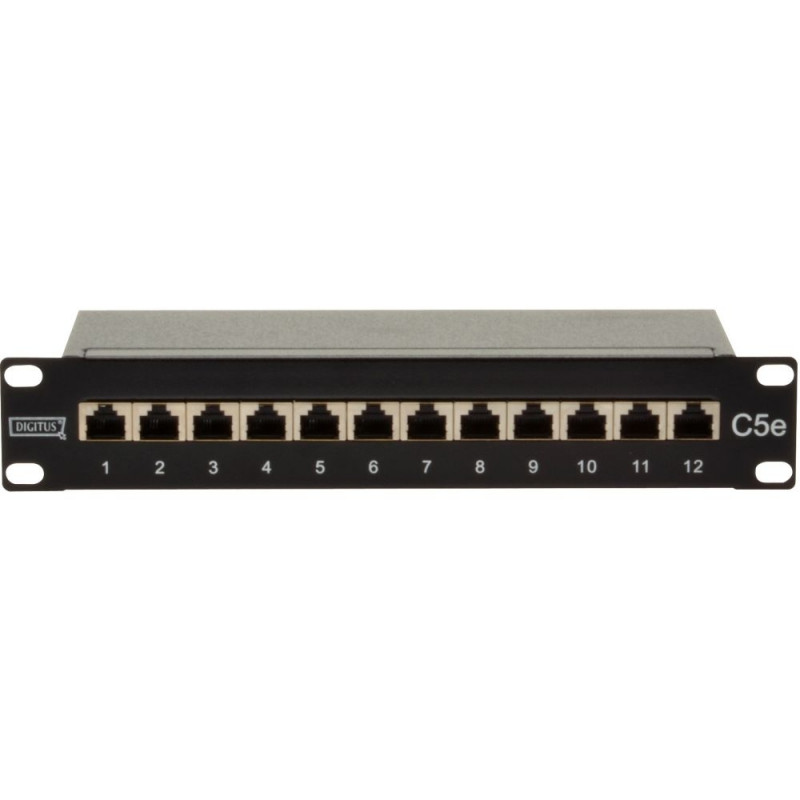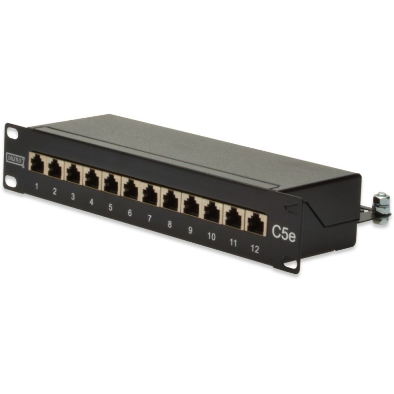 "DIGITUS Patchpanel 1HE 12-Port Cat5e ClassD geschirmt schw."