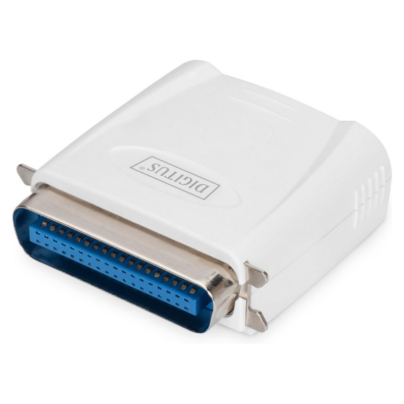 "Digitus Fast Ethernet Print Server, Parallel. Produktfarbe: Weiß, LED-Anzeigen: LAN, Status, Ursprungsland: Taiwan. Network Connection Typ: Ethernet-LAN, Netzstandard: IEEE 802.3, IEEE 802.3u, Ethernet LAN Datentransferraten: 10,100 Mbit/s. Unterstützte Netzwerkprotokolle: TCP/IP, IPX/SPX, NetBEUI, AppleTalk, Management-Protokolle: SNMP. Unterstützt Windows-Betriebssysteme: Windows 7 Home Basic, Windows 7 Home Basic x64, Windows 7 Home Premium, Windows 7 Home Premium..., Unterstützung anderer Betriebsysteme: Novell NetWare 4.x, Novell NetWare 5.x, Novell NetWare 6.x. Verpackungsabmessungen (BxTxH): 230 x 150 x 70 mm, Verpackungsart: Box, Verpackungsbreite: 230 mm"