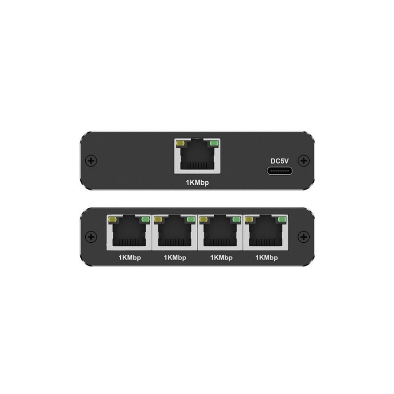 - Equipped with 5 RJ45 ports (1 x Input, 4x Output)