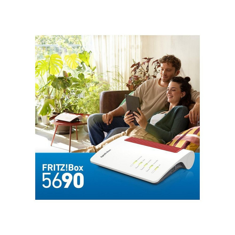 "Box 5690. WAN-Verbindungstyp: GPON, RJ-45. WLAN-Band: Dual-Band (2,4 GHz/5 GHz), Top WLAN-Standard: Wi-Fi 7 (802.11be), WLAN Datentransferrate (max.): 5760 Mbit/s. Schnittstellentyp Ethernet-LAN: 2.5 Gigabit Ethernet. Unterstützte Sicherheitsalgorithmen: WPA2, WPA3, WPS. Produkttyp: Tabletop-Router, Produktfarbe: Rot, Weiß"