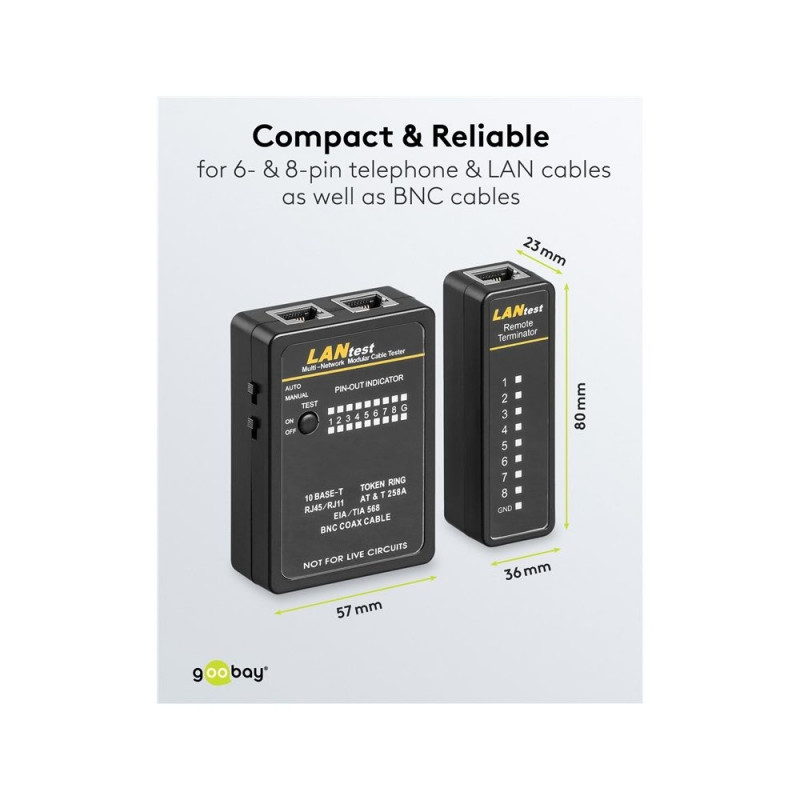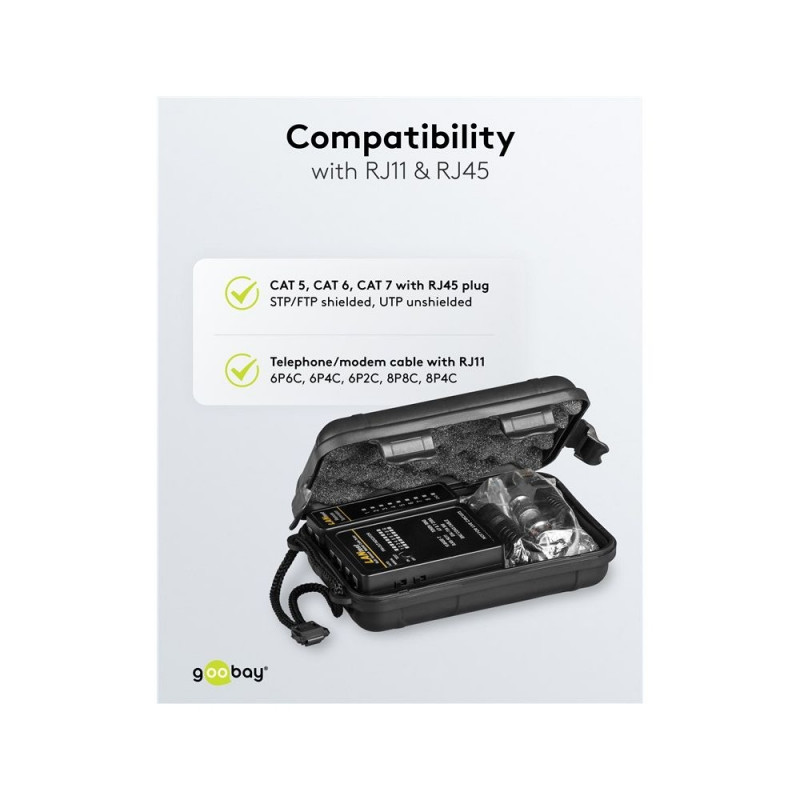 | Description | The network kit is the handy solution for checking the functionality of telephone and CAT cables in your home network. In the event of connection problems, the network tester helps to check the individual cable cores to determine or rule out a defective c |