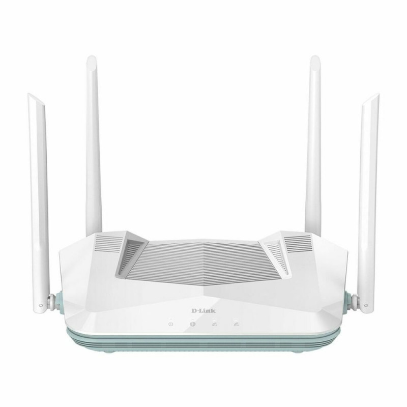 The D-Link R32 is a router designed to provide robust, high-speed connectivity for home and small office environments. Featuring a white design and compact dimensions of 228.3 x 159 x 61.9 mm, this device includes four Gigabit Ethernet LAN ports and one Gigabit Ethernet WAN port for fast, stable wired connections, supporting speeds up to 10/100/1000 Mbps. Its wireless connectivity is based on dual-band Wi-Fi technology, operating at 2.4 GHz and 5 GHz frequencies, reaching theoretical maximum speeds of up to 800 Mbps on 2.4 GHz and 2402 Mbps on 5 GHz, thanks to four external antennas optimized for dual band. It supports IEEE 802.11ax/ac/n/g/b/k/v/a/h and IEEE 802.3u/ab standards, ensuring compatibility and efficient data transmission, as well as improved management of multiple connected devices simultaneously. The R32 features an advanced security system including WPA3, WPA2, and WPA protocols, plus a firewall with DoS protection, dynamic packet inspection, and IP/MAC filtering, providing strong protection against attacks and unauthorized access. This model also offers intelligent QoS for traffic prioritization and performance optimization, along with D-Link Wi-Fi Mesh functionality to extend coverage without speed loss. Physical controls include a WPS button for quick connection, a power on/off button, and LED indicators showing power, Internet, and Wi-Fi band status. Device management is easy via the EAGLE PRO AI app, available for iOS and Android, or through a web interface, simplifying network setup and monitoring. It also supports voice assistants like Amazon Alexa and Google Assistant for added convenience. Maximum power consumption is moderate at 15.18 W, and its components are certified under CE and FCC standards, ensuring quality and compliance. This router supports various WAN interface methods such as static IP, dynamic IP, PPPoE, PPTP, L2TP, and DS-Lite, with capacity for up to 30,000 concurrent sessions, making it suitable for environments with multiple users and devices. In summary, the D-Link R32 router combines advanced connectivity features, enhanced security, and ease of use in a compact, functional design aimed at delivering an efficient and stable network experience for demanding users.