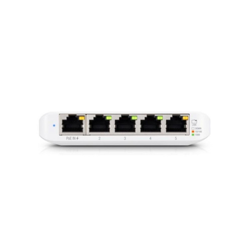 5-Port managed Gigabit Ethernet switch powered by 802.3af/at PoE or 5V, 1A USB-C power adapter. Build and expand your network with the UniFi® Switch, part of the Ubiquiti Networks® UniFi Enterprise System. The UniFi Switch, model USW-Flex-Mini, is a smart managed Gigabit switch. It offers 5 RJ45 Ethernet ports, providing 1 Gigabit links to your devices. Power up the USW-Flex-Mini with the included USB Type-C power adapter or with 802.3af PoE Ethernet in port 1. Managed by UniFi Network Controller version: 5.12.5 or higher.