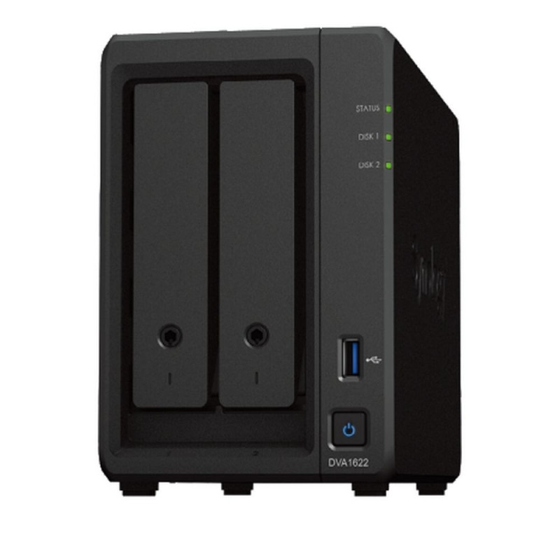 The DVA1622 from Synology is an advanced network video recorder (NVR) designed for professional AI-powered surveillance systems, offering a comprehensive solution for digital video management and storage. This device features a powerful Intel Celeron processor that ensures fast and efficient video signal processing, essential for modern security applications. It includes 2 SATA drive bays, allowing flexible installation of storage units supporting up to 32 TB, enabling massive storage of continuous or high-resolution recordings. Equipped with DDR4 memory, it enhances performance and the ability to manage multiple high-definition video streams simultaneously. Additionally, it offers standard connectivity through USB ports and an HDMI output for easy integration with monitors and accessories. Its design includes a system of LED indicators that provide real-time status and operation information, while its power supply with a universal voltage range (100-240 V) allows installation in various environments and regions, using the appropriate EU plug. This Synology NVR is compatible with configurations for Spain and is optimized for control and monitoring in business or home environments requiring continuous surveillance, with expanded capabilities thanks to its intelligent video analysis features. In summary, the Synology DVA1622 combines robustness, performance, and scalability in a device specially designed to deliver advanced AI-driven storage and surveillance solutions.