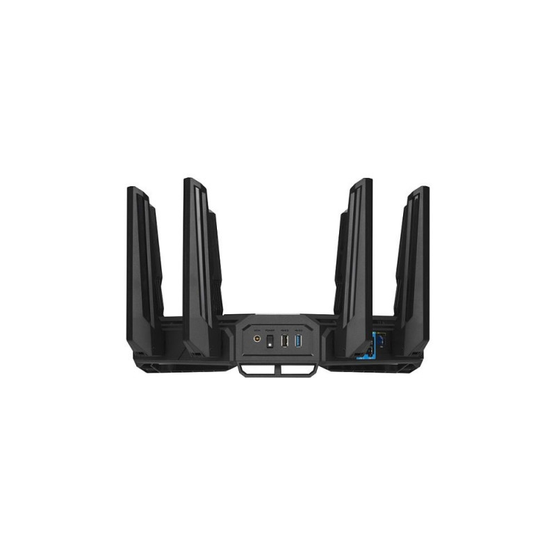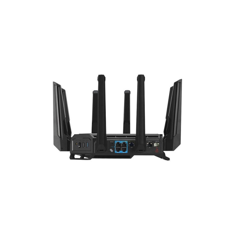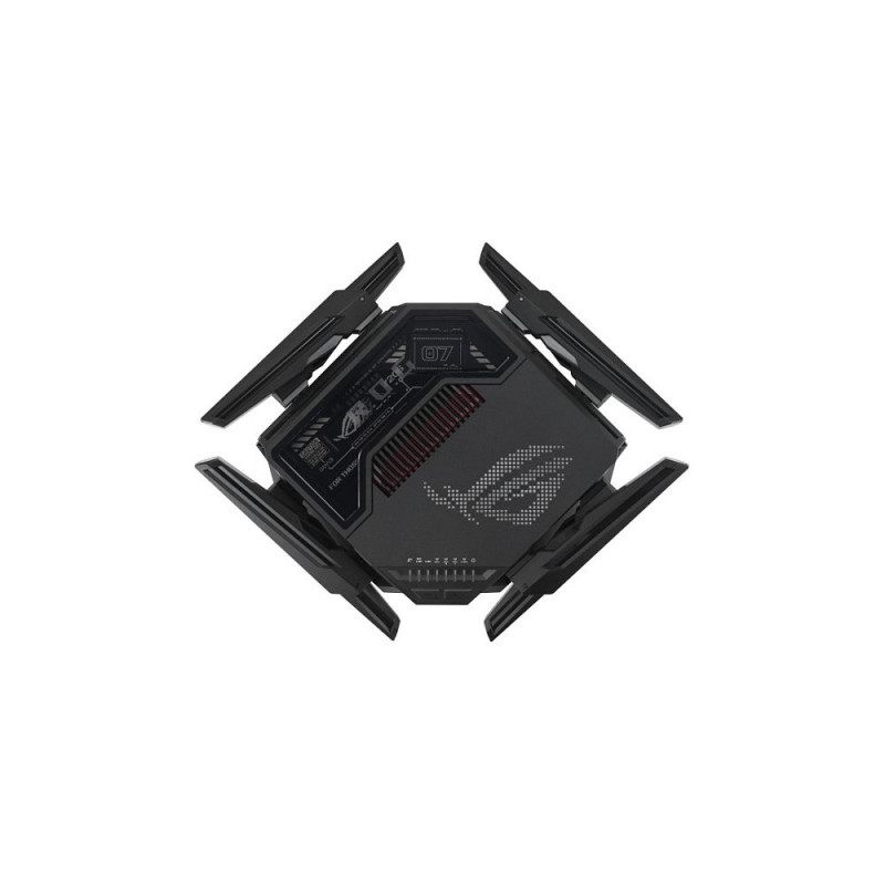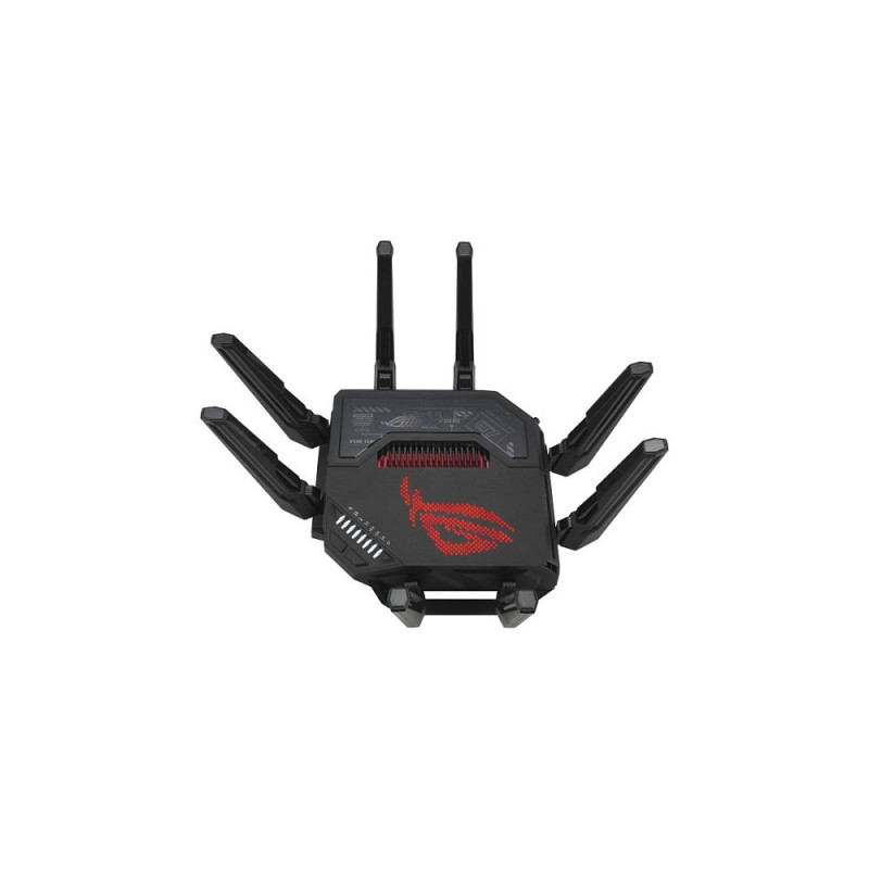 "ASUS ROG Rapture GT-BE98. WLAN-Band: Quad-band (2.4 GHz / 5 GHz-1 / 5 GHz-2 / 6 GHz), Top WLAN-Standard: Wi-Fi 7 (802.11be), WLAN Datentransferrate (max.): 11529 Mbit/s. Schnittstellentyp Ethernet-LAN: 10 Gigabit Ethernet, Ethernet LAN Datentransferraten: 10,100,1000,2500,10000 Mbit/s, VPN Unterstützung: VPN Client L2TP VPN Client Open VPN VPN Client PPTP VPN Client WireGuard VPN Server IPSec VPN.... Unterstützte Sicherheitsalgorithmen: SSH, WPA-Enterprise, WPA-PSK, WPA2-Enterprise, WPA2-PSK, WPA3-Enterprise, WPA3-PSK, WPS. Produkttyp: Tabletop-Router, Produktfarbe: Schwarz, LED-Anzeigen: LAN, Leistung, WAN. Mitgelieferte Kabel: LAN (RJ-45)"