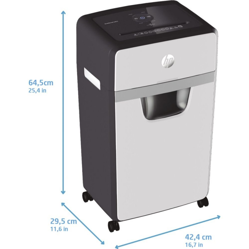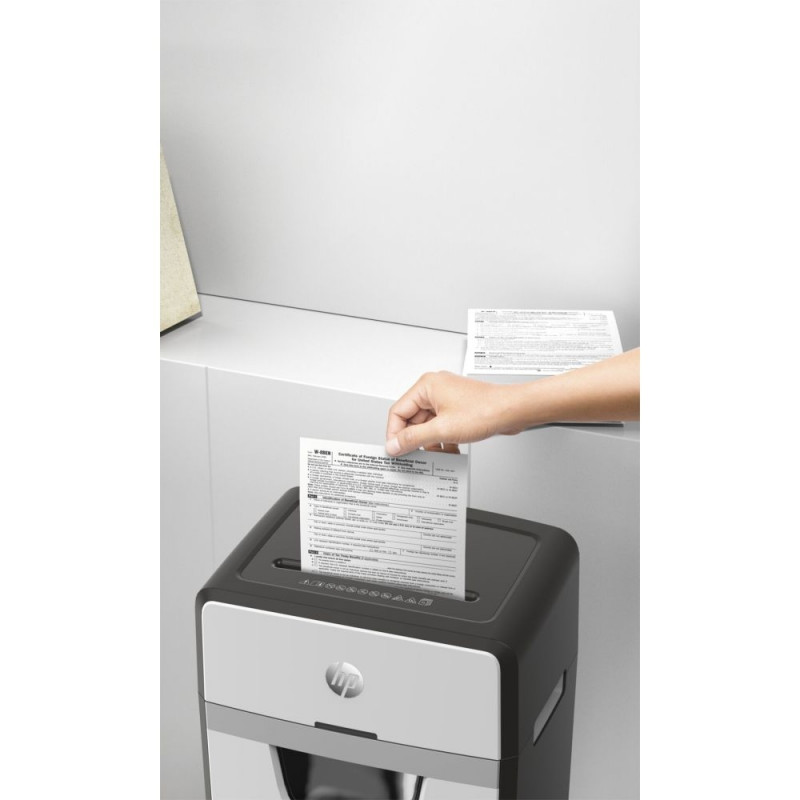 In Cross Cut, the powerful HP OneShred 24CC shreds up to 24 A4 sheets at a time. With particle cutting, the modern document shredder shreds your sensitive company data into 4 mm x 35 mm small shreds and thus meets the high requirements of security level P-4. These features ensure the DSGVO-compliant destruction of personal data, which is why this hard-working helper is a quintessential feature of any open-plan office. If you have not used the shredder for more than 30 minutes, it automatically switches to sleep mode and has a reduced power consumption of only 0.5 watts.