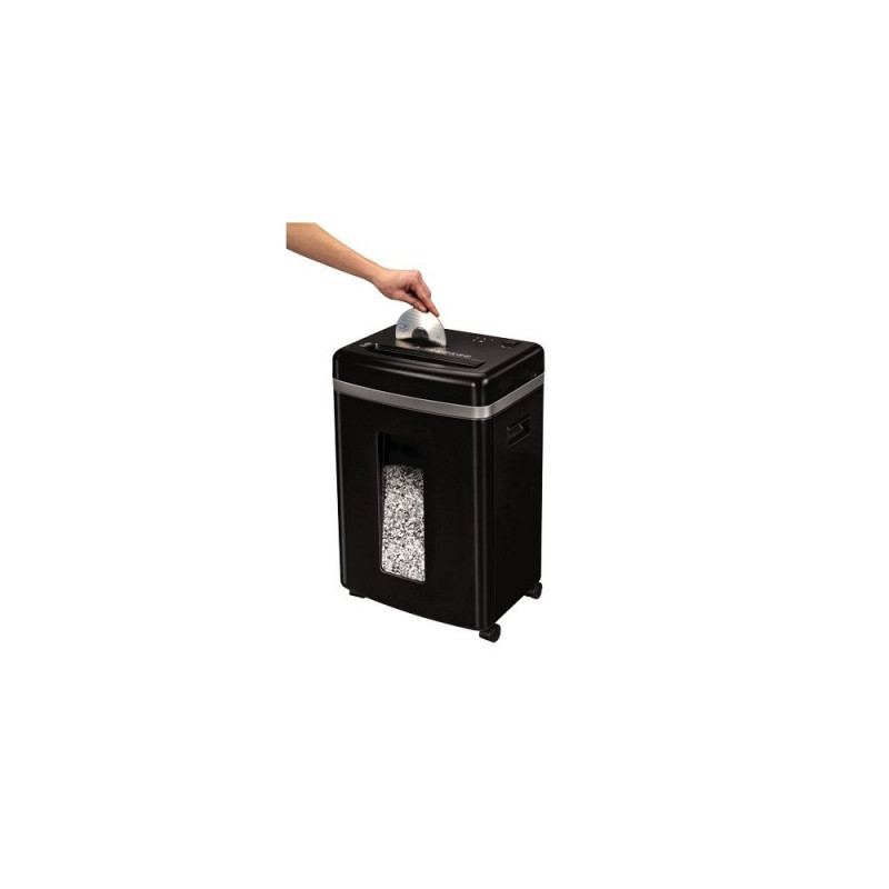 Micro-cut shredder with a security level P-5 rating. Shreds up to 450 sheets of paper per day.