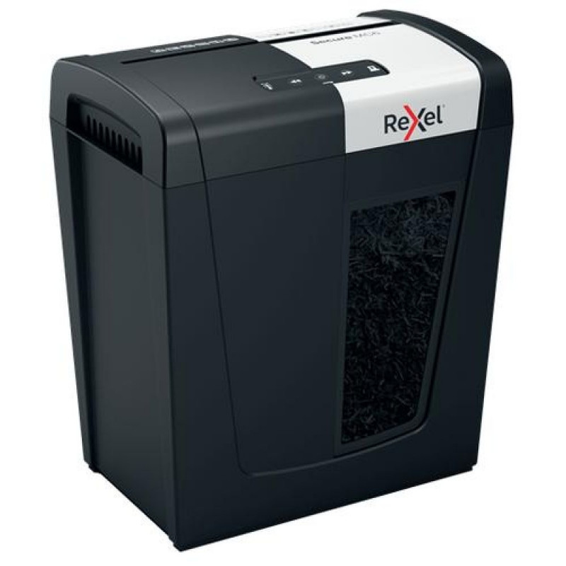 Rexel's range of Secure paper shredders are ideal for destroying your personal documents and sensitive information at home. The Secure MC6 shredder machine shreds up to 6 sheets of A4 paper (80gsm) in one go through the manual feed slot into P-5 (2x15mm) micro cut pieces. This micro cut shredder is perfect for use as a home shredder or in a home office due to its small and compact size. It is also an ideal personal office shredder that fits conveniently under a desk and operates with Whisper-Shred™ low noise. Designed for light to moderate use with a 18L bin capacity for less frequent emptying.Rexel Secure MC6 Whisper-Shred Micro Cut Paper Shredder P5. Shredding type: Micro-cut shredding, Shredding size: 2x15 mm, Basket volume: 18 L. Width: 204 mm, Depth: 351 mm, Height: 355 mm