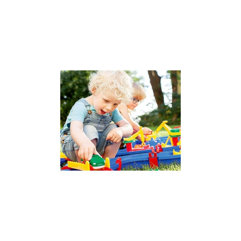 AquaPlay’s StartSet is the perfect way to start creating your own AquaPlay world! It contains the popular harbour where Wilma the Hippo controls the crane and loading of the containers on the amphibian truck and container boat. By turning the paddleProduct has been archived