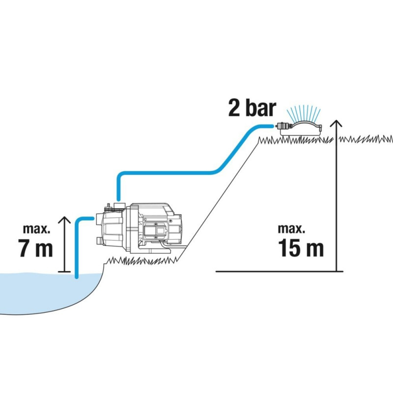Whether you want to water your plants, increase water pressure, pump groundwater, tap water, rainwater or even chlorinated swimming pool water, the Gardena 3000/4 BASIC pump will help you get the job done easily and efficiently. Pumping water from a well, cistern or rain barrel to a lawn sprinkler or garden sprayer is no problem, as the light, robust and compact electric pump is easy to operate and offers good suction power with high pressure performance. Filling and emptying is also convenient, as the pump has an additional filling opening as well as a drain screw. This way, the residual water can be drained and your pump is protected from possible frost damage in winter.