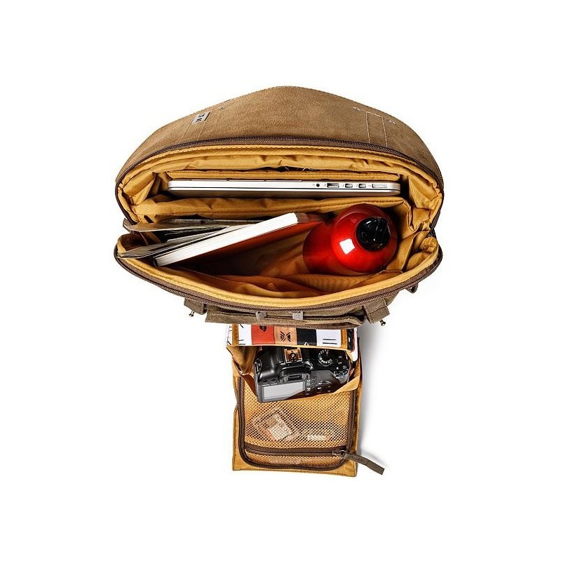The Africa Small Backpack will carry all your essentials in the upper part thanks to a removable and hidden pocket that divides the bag in two. Your photographic or video equipment, such as DSLR, additional lenses and accessories, will be safely protected in a dedicated compartment, easily accessible via the front pocket. An upper personal storage compartment holds all your personal necessities, such as food, clothes and books. If necessary, the division between upper and lower compartments can be removed.