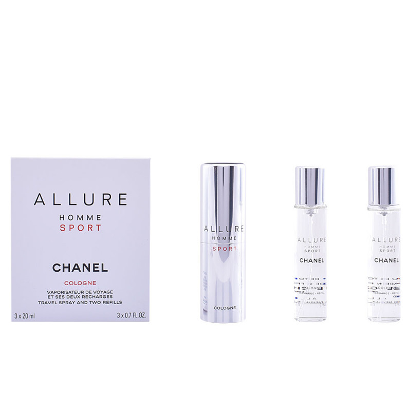 CHANEL ALLURE HOMME SPORT COLOGNE eau de toilette vaporizador de viaje y 2 recargas 3 x 20 ml