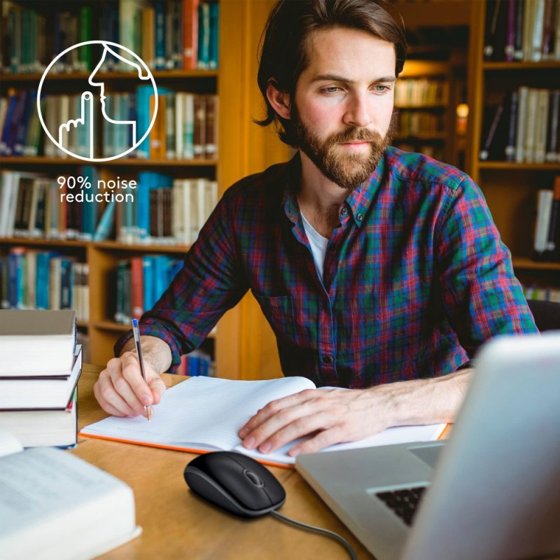 • The sound of silence: The M110 Logitech mouse offers the same click feel with more than 90% noise reduction on the click sound. Enjoy a quiet experience for you and those close by