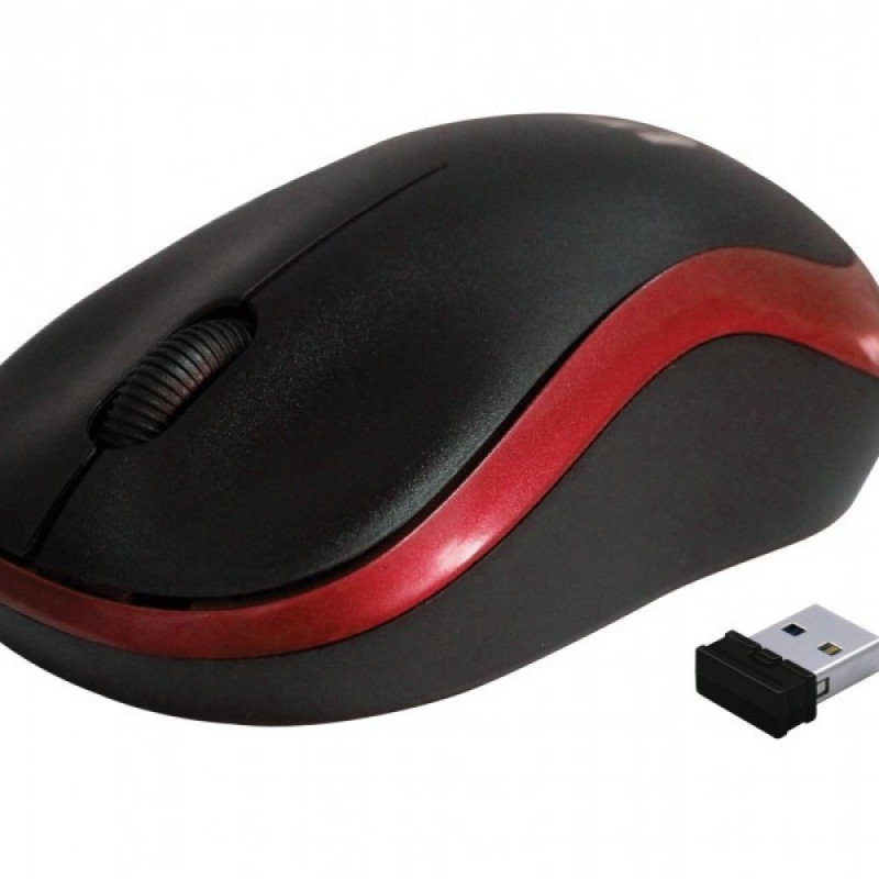Wireless optical mouse 2.4Ghz wireless technology Optical sensor 1000 DPI 3 buttons and a scroll wheel Range 6-10 m Nano USB receiver Weight 46g Powered by 2xAAA