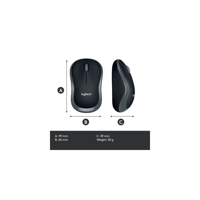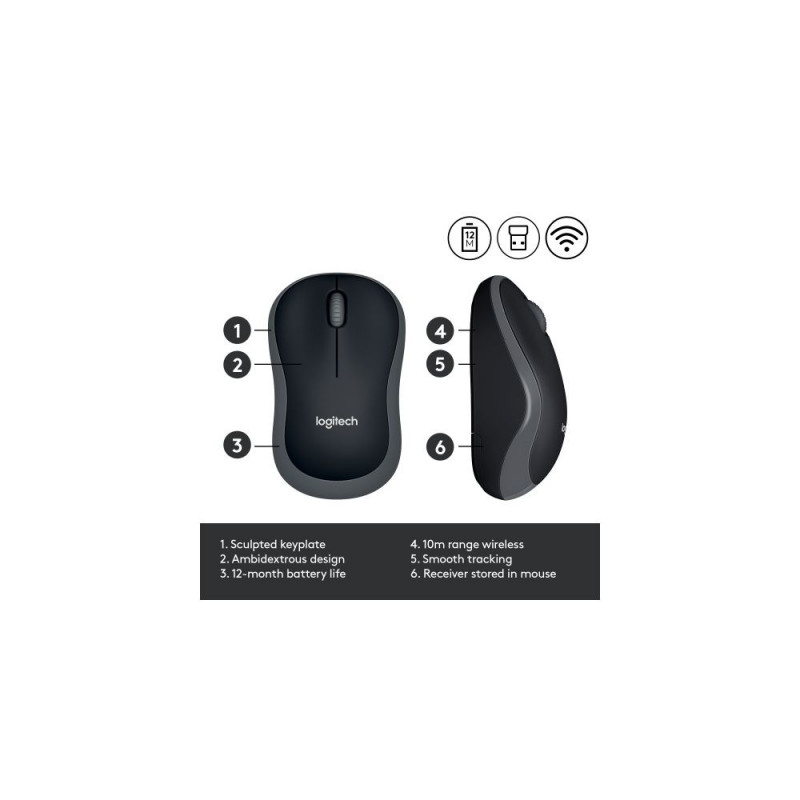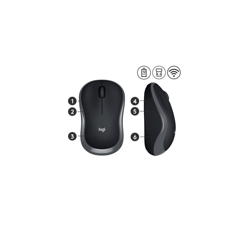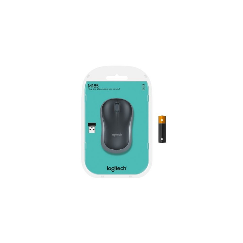 Logitech M185 Wireless Mouse, RF Wireless, 1000 DPI, Black/Grey