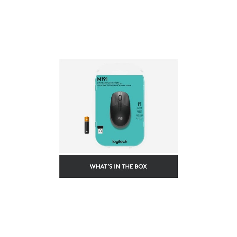 Logitech M190 Full-Size Wireless Mouse, RF Wireless, 1000 DPI, Mid Grey