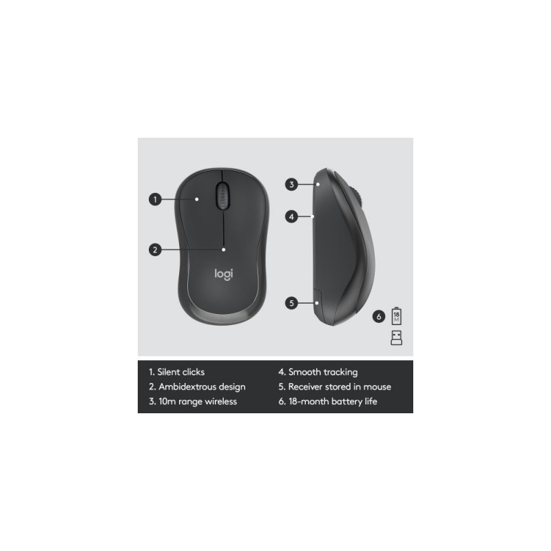 Logitech MK295 Silent Wireless Combo Wireless keyboard, US Int, Graphite