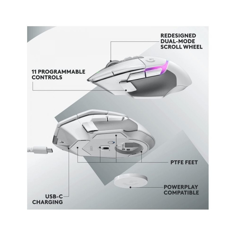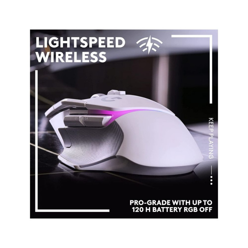 The G502 X PLUS is a new mouse from the legendary G502 series. The design of the device has been updated and modernized with innovative gaming technologies. Brand new LIGHTFORCE, optical-mechanical, hybrid switches provide higher levels of speed and reliability, and maintain clear and precise mechanical operation, professional LIGHTSPEED wireless connectivity, LIGHTSYNC RGB lighting, and hero 25k optical sensor.Advanced professional-level connectivity delivers impressive responsiveness that's up to 68% faster than the previous generation. With LIGHTSPEED energy-efficient technology, the G502 X PLUS has a battery life of 120 hours with RGB lighting off and 37 hours with it on. In addition, the G502 X PLUS is compatible with POWERPLAY technology.