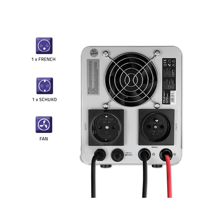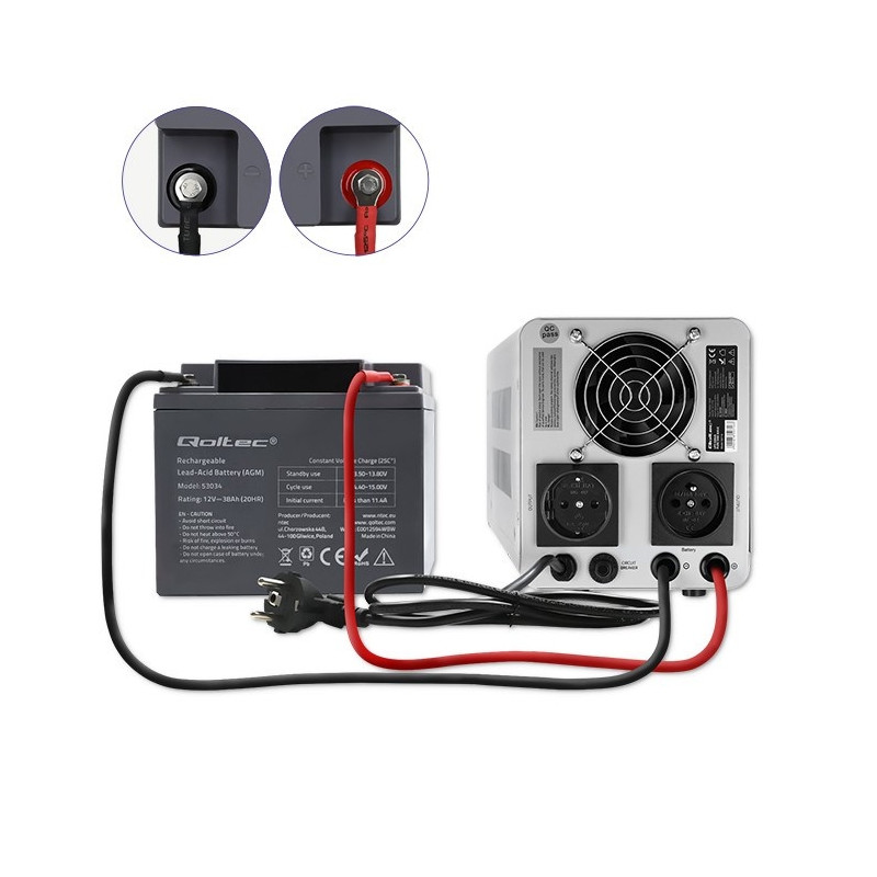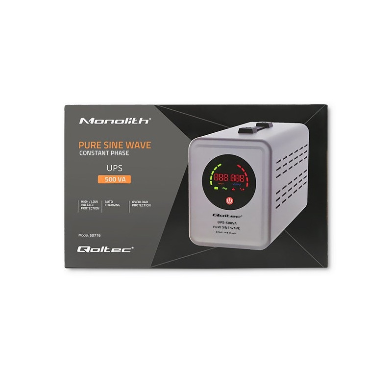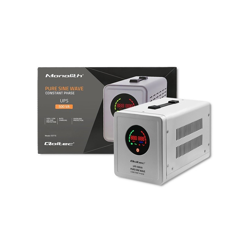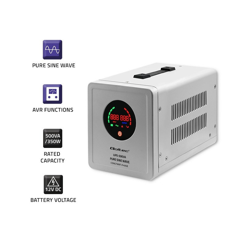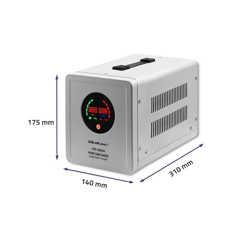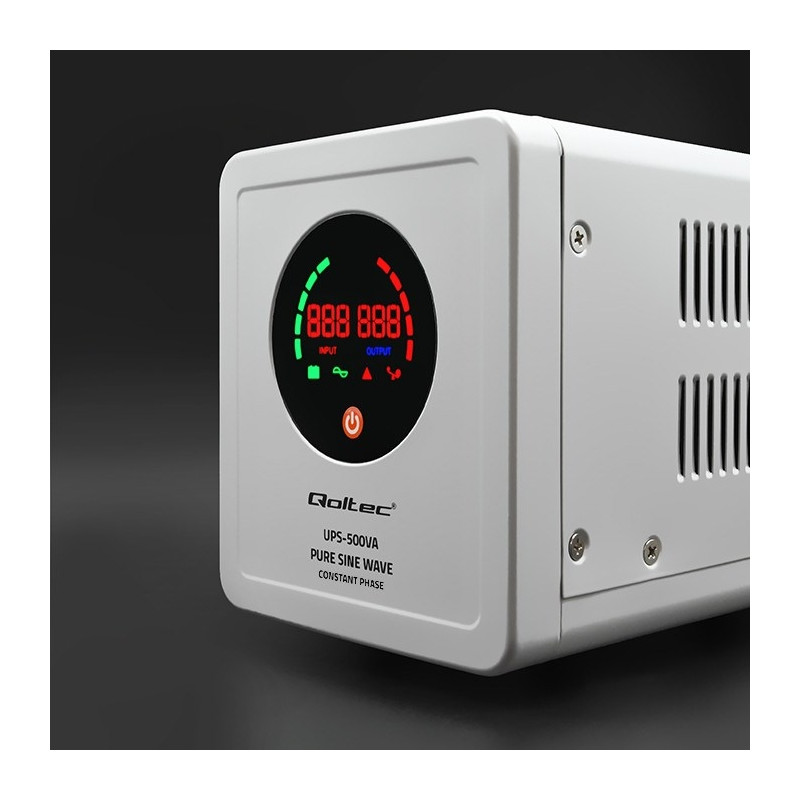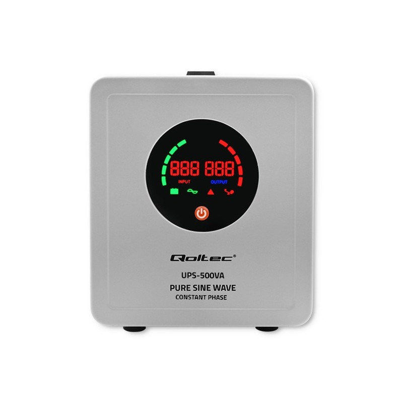 Qoltec 50716 Uninterruptible power supply Pure Sine Wave UPS | 500VA | 350W | constant phase | Grey