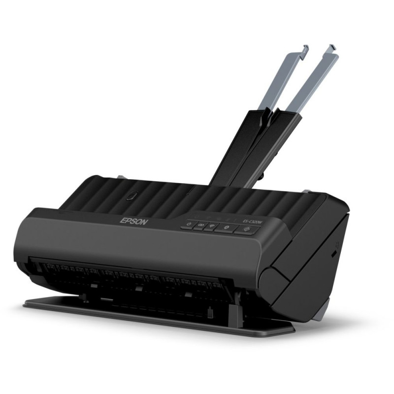 The WorkForce ES-C320W impresses with its extremely compact footprint, which does not increase in size when the U-shaped paper guide is used, even during operation. This makes this feed-in scanner with USB and WLAN interfaces and support for WiFi direct the ideal choice for workplaces with limited space. The straight paper path mode can also be used to scan originals up to 5 millimeters thick (separately available carrier film required). The ES-C320W is extremely energy-efficient and protects the originals with sophisticated technology. This scanner is designed for a daily scanning volume of up to 3500 pages. It is operated using function keys on the front. Item no.: 100011383